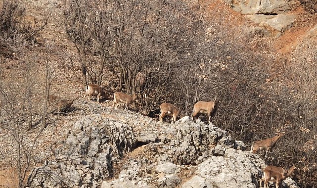 Yaban keçileri, Doğanşehir'e bağlı Erkenek Mahallesi Akdağ bölgesinde görüntülendi. Avlanması yasak olan yaban keçileri, beslenmek amaçlı çıktıkları kayalıklarda cep telefonu kamerasına yansıdı. Sarp ve dik kayalarda gezen yaban keçileri, kayalık alanlarda zayıf ve çevik bedenleri sayesinde 90 derecelik dik bir açı gibi görünen yamaçlara bile kolayca tırmanabiliyor.