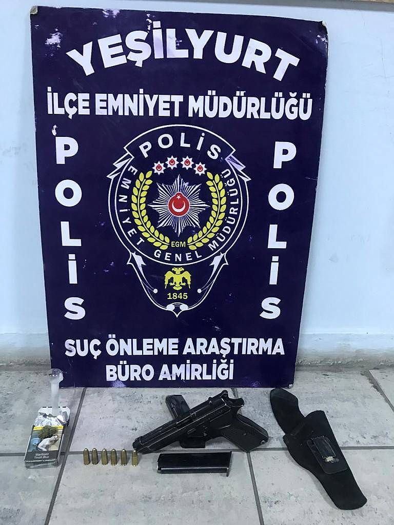 Edinilen bilgilere göre, 31 Ekim Pazar günü Yeşilyurt ilçesine bağlı Hıroğlu Mahallesi eski Değirmen mevkiinde bir kişiyi silahla yaralayan şüphelinin olay sonrası kaçarak bölgeden uzaklaştığı bilgisi üzerine çalışma başlatan ekipler olayın şüphelisi olarak tespit edilen şahsın aynı zamanda üç ayrı suçtan arandığını, 4 yıl 2 ay kesinleşmiş hapis cezası bulunduğunu belirledi. Şahsın yakalanması için çalışmalarını aralıksız sürdüren Yeşilyurt Suç Önleme Soruşturma Büro ekipleri şüpheliyi olaydan 9 gün sonra yaşanan kovalamaca sonrasında yakalayarak gözaltına aldı. Şahsın yapılan üst aramasında 1 adet tabanca ve şarjöre basılı vaziyette 6 adet fişek ile 0.42 gram uyuşturucu madde elde geçirildi.