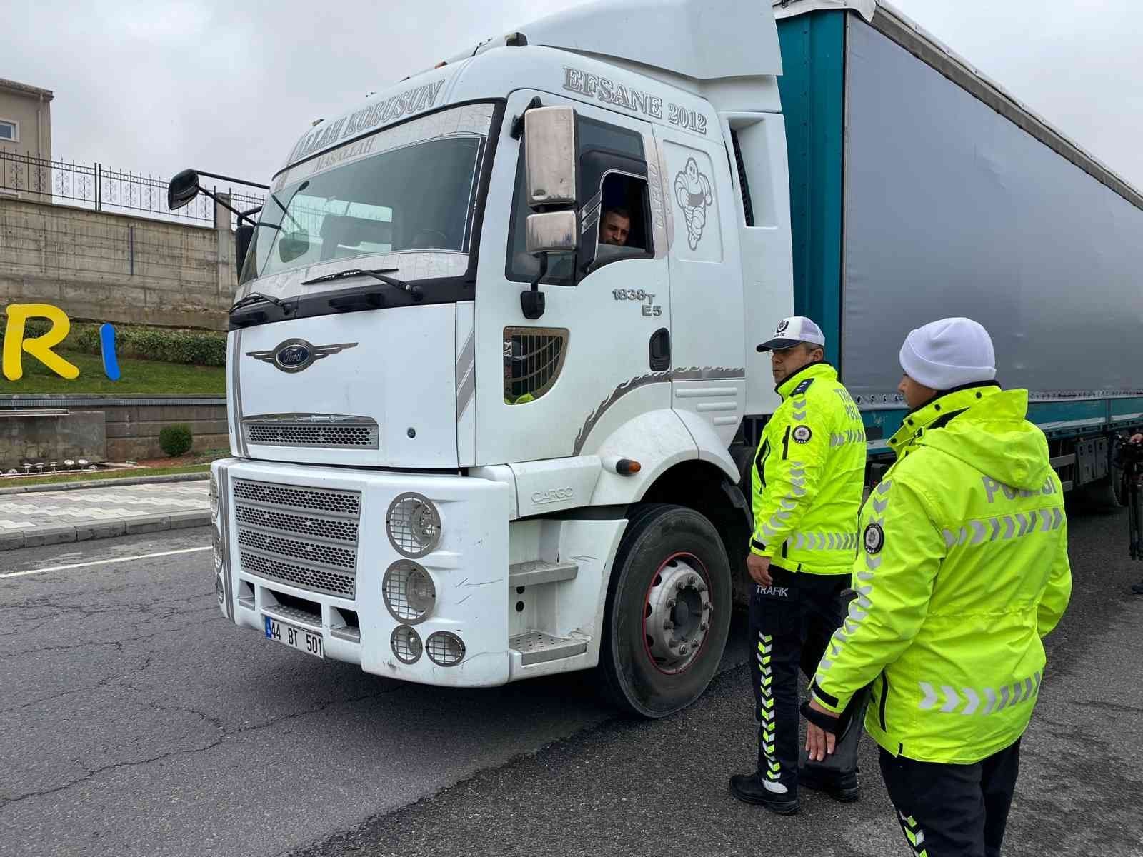 Malatya'da şehirlerarası yük ve yolcu taşıyan araçlar için getirilen zorunlu kış lastiği uygulaması çerçevesinde denetimler başladı.