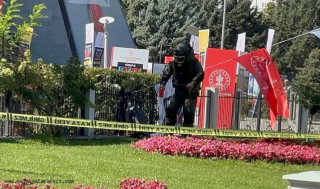 Özel kıyafetini giyen uzman ekip, valizin yanına fünye yerleştirdi. Bu sırada yaya ve araç trafiğine bölge tamamen kapatıldı. Kontrollü patlamayla açılan valizin boş olduğu belirlendi.