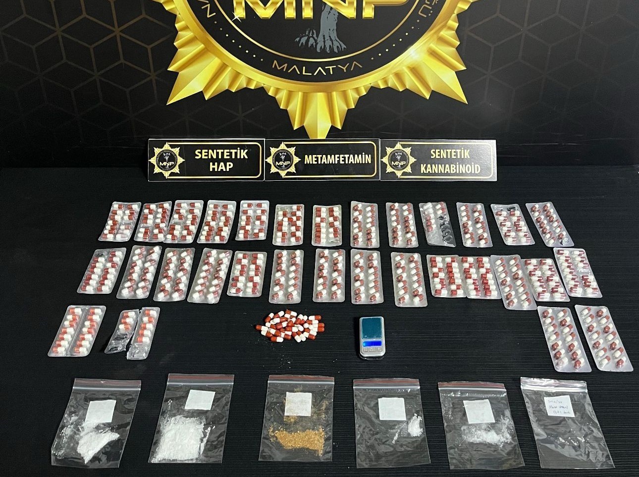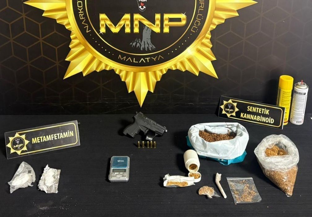 Malatya'da, İl Emniyet Müdürlüğü Narkotik Suçlarla Mücadele Şube Müdürlüğü ekipleri 'torbacı' olarak tabir edilen sokak satıcılarına yönelik operasyon gerçekleştirdi. Fiziki takipli 3 ayrı çalışma kapsamında 5 ikamet, 1 araç ve 5 şahsın üzerinde yapılan aramalarda 3 bin 326 adet sentetik ecza, 313 gram sentetik kannabinoid, 257 adet ecstasy hap, 22 gram metamfetamin, 2 gram esrar, 1 adet ruhsatsız tabanca ve 1 adet ruhsatsız tüfek ele geçildi, 5 zanlı gözaltına alındı.