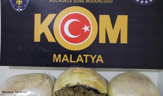 Malatya'da bir yolcu otobüsünde yapılan aramada 12 kilo 600 gram esrar ele geçirildi.