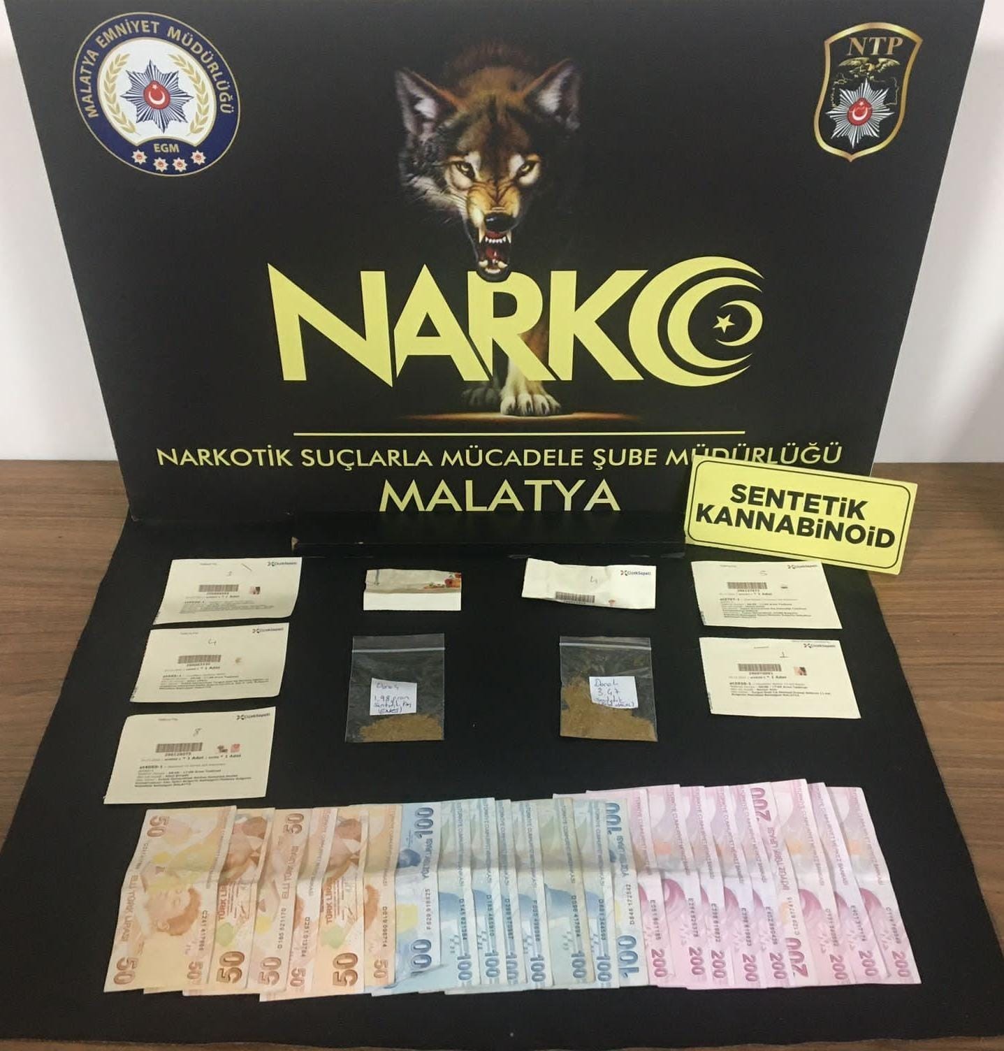 Malatya'da İl Emniyet Müdürlüğü'nün uyuşturucu ile mücadele çalışmaları aralıksız sürerken, ekip tarafından gerçekleştirilen beş ayrı operasyonda 3 kilo 915 gram skunk , 1 kilo 715 gram kubar esrar , 5,45 gram sentetik kannobinoid , 33,78 gram metamfetamin maddeleri ile 12 adet sentetik ecza hap, 1 adet payp ve uyuşturucu madde ticaretinden elde edildiği değerlendirilen 42 bin 170 TL ele geçirildi.Altı kişinin gözaltına alındığı operasyonlarda işlemlerinin ardından adliyeye sevk edilen zanlılardan B.M.'ye adli kontrol uygulanırken, E.Ç., F.A., H.A., Y.B. ve S.G. tutuklanarak cezaevine gönderildi.