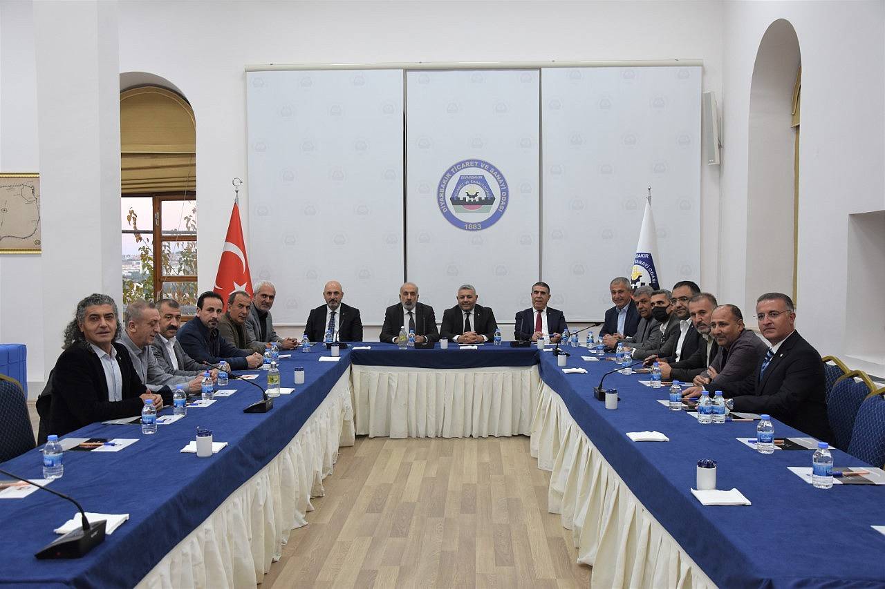 Başkan Sadıkoğlu ile birlikte Meclis Başkan Vekili Hakan Er, Yönetim Kurulu Üyeleri Ömer Dinç, Zekeriya Çelebi, Meclis Üyeleri Mehmet Özer, Osman Yıldırım, Oğuz Alkan ve Mikail İkiz ilk olarak Diyarbakır Ticaret Odası'nı ziyaret ederek Başkan Mehmet Kaya, Meclis Başkanı Celalettin Birtane ve Yönetim Kurulu Üyeleri ile bir araya geldi.