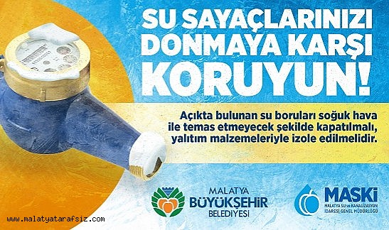 Kış aylarında hava sıcaklıklarının aniden düşmesi ile birlikte su sayaçları ve tesisatlarda oluşabilecek donma riskini engellemek için abonelere çağrıda bulanan MASKİ Genel Müdürü Mehmet Mert, korumasız ve açıkta bulunan su sayaçları ile su borularının donma olasılığının yüksek olduğunu söyledi. Mert, “Kış aylarının gelmesiyle hava sıcaklığı düşmeye başladı. Vatandaşların açıkta bulunan su boruları ve sayaçları donmaya karşı koruma altına almaları gerekiyor. Açıkta bulunan su boruları soğuk hava ile temas etmeyecek şekilde kapatılmalı, yalıtım malzemeleriyle izole edilmelidir. Özellikle müstakil evlerde ve kırsal kesimlerde yaşayan vatandaşlarımız bu konuda hassas davranmalı, açıkta olan su borularını ve sayaçlarını önerilen şekilde muhafaza altına almalılar” dedi.