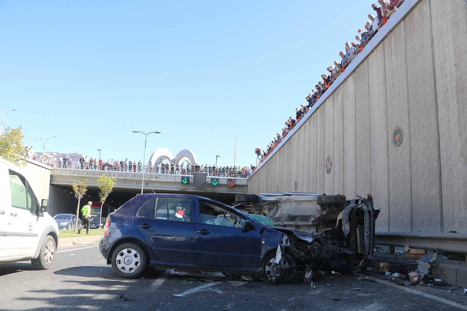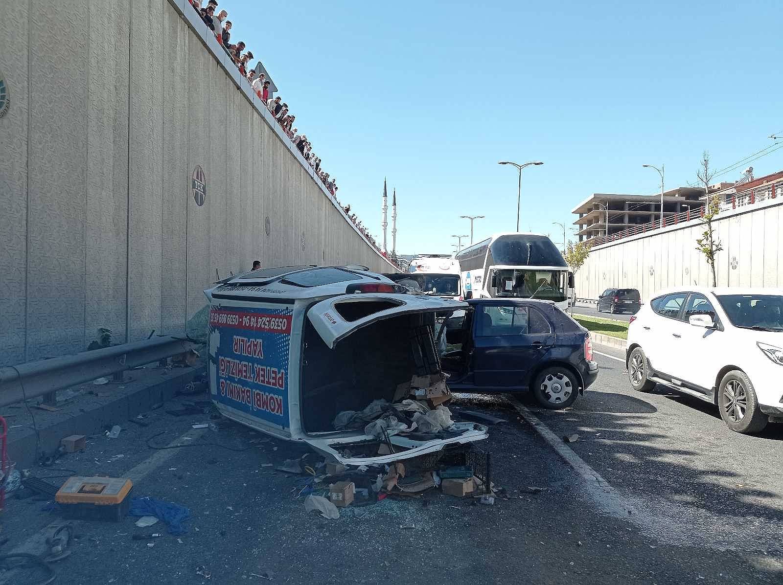 Malatya'da vatandaşlar, 3 aracın karıştığı ve 4 kişinin yaralandığı trafik kazasını film izler gibi izledi.