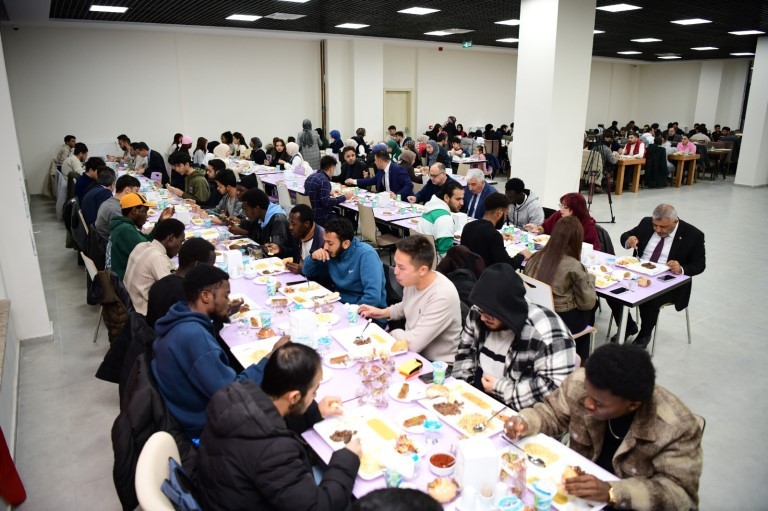 Yeşilyurt Yerleşkesi Öğrenci Yaşam Merkezi'nde düzenlenen iftar programında uluslararası öğrenciler bir araya geldi. Rektör Prof. Dr. Recep Bentli'nin katılımıyla gerçekleştirilen programda, farklı ülkelerden gelen öğrenciler Ramazan ayının manevi atmosferinde aynı sofrada buluştu. Yeni yemekhane binasında düzenlenen iftar programı, birlik ve beraberlik duygularını pekiştirirken öğrencilerle doğrudan iletişim kurulmasına da imkan sağladı.