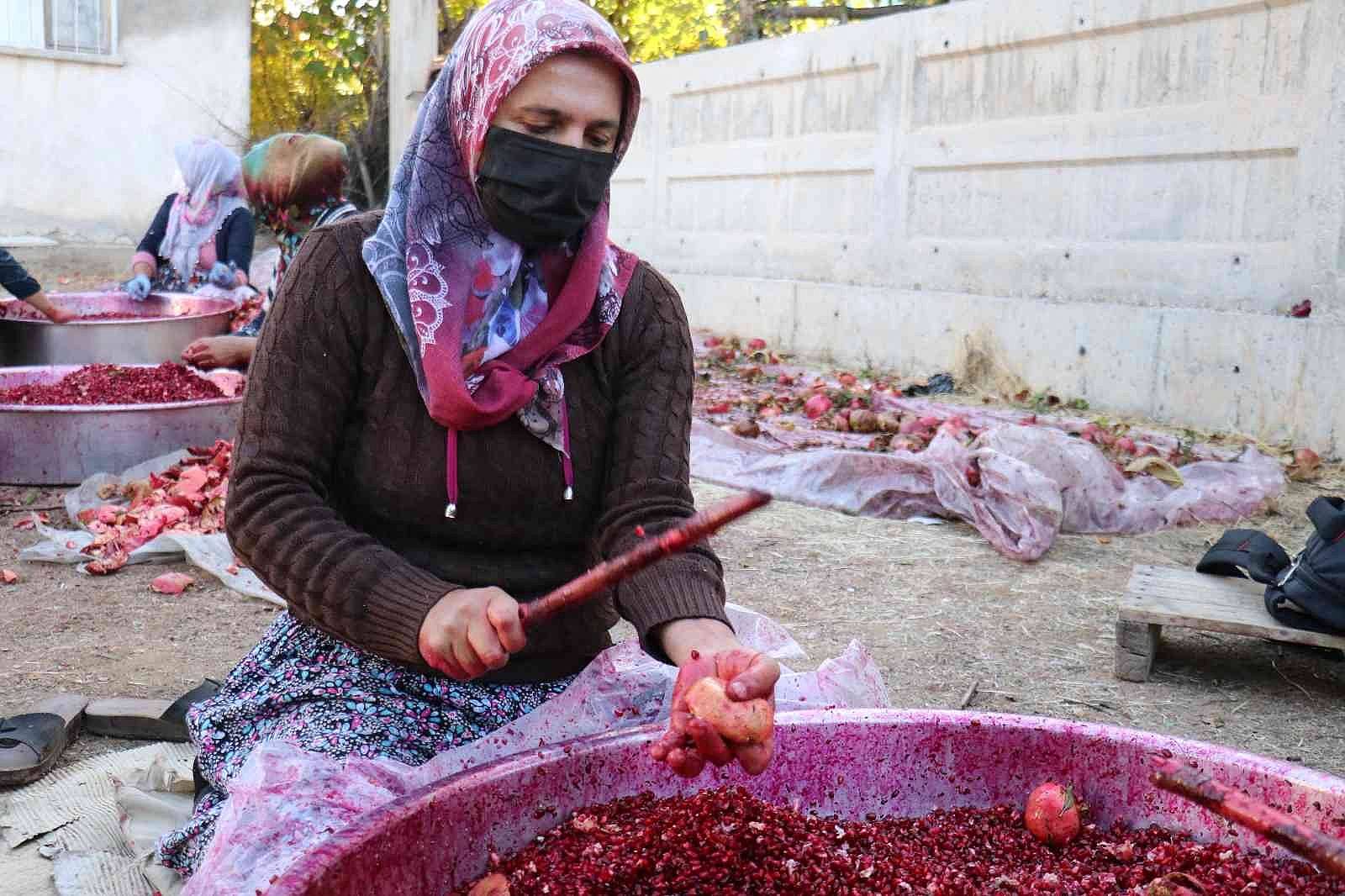 Malatya'nın Yeşilyurt ilçesinde imece usulü yapılan ve sofraların vazgeçilmezi olan nar ekşisi için kadınların mesaisi başladı.