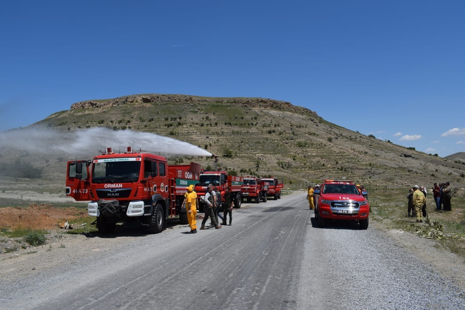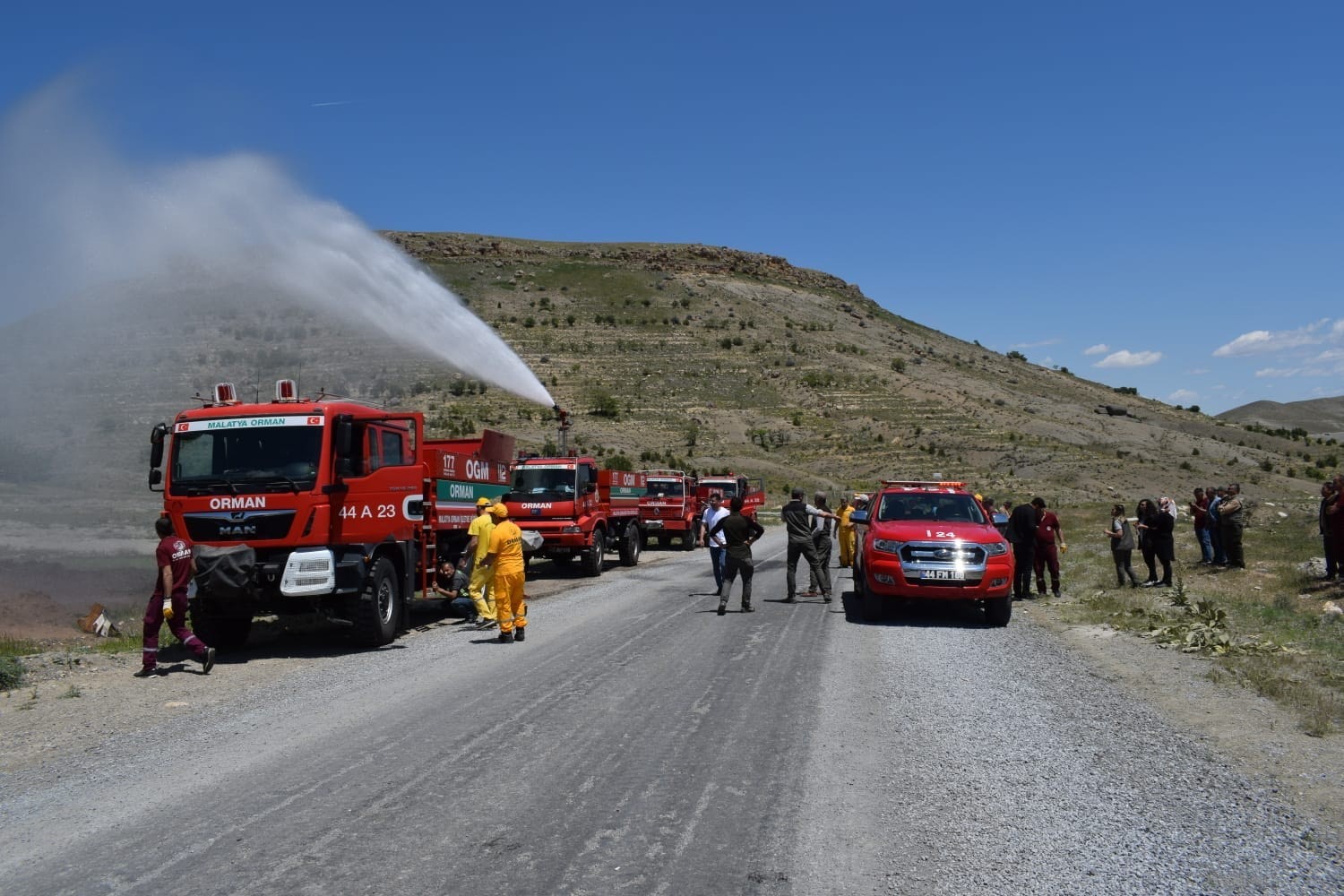 Malatya'da 2022 yılı orman yangınları ile mücadele çerçevesinde yangın işçilerine işbaşı eğitimleri ile araçların telsiz ve arvento sorunlarının giderilerek güncellenmesi çalışmaları hız kesmeden devam ediyor.
