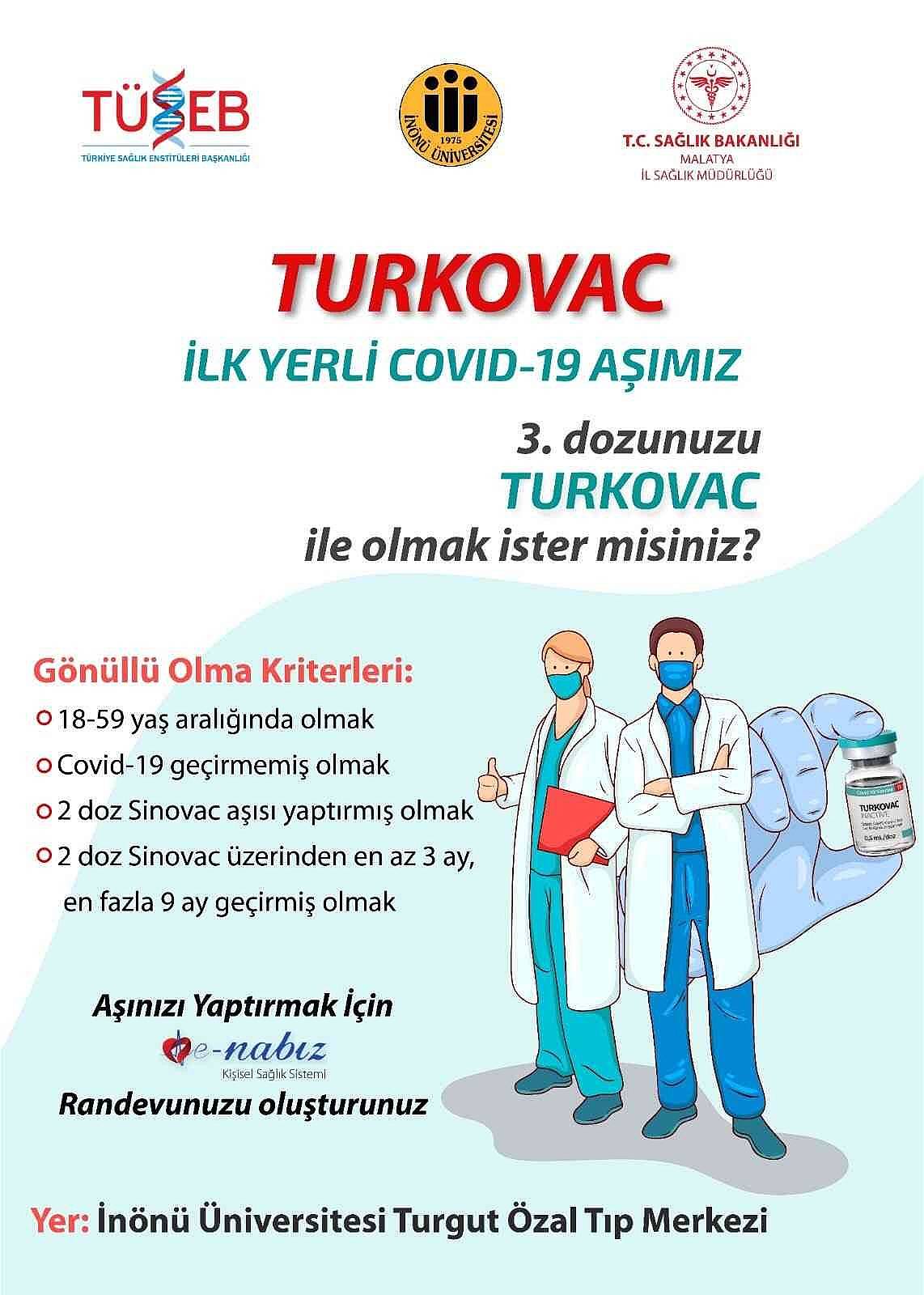 Malatya İnönü Üniversitesi Turgut Özal Tıp Merkezi'nde Turkovac aşısı yapılmaya başlandı.
