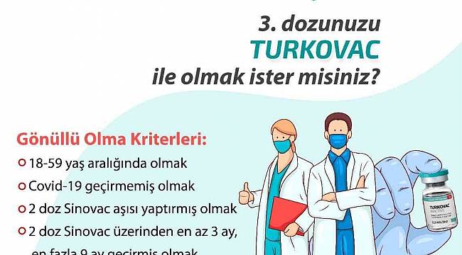 Bentli, "18-59 yaş aralığındaysanız, şu ana kadar Covid-19 hastalığını geçirmediyseniz, 2 doz Sınovac aşınızı yaptırdıysanız ve 2. Doz aşınızın üzerinden en az 3 ay en fazla 9 ay geçtiyse, siz de Turkovac gönüllüsü olabilirsiniz" ifadelerine yer verdi.