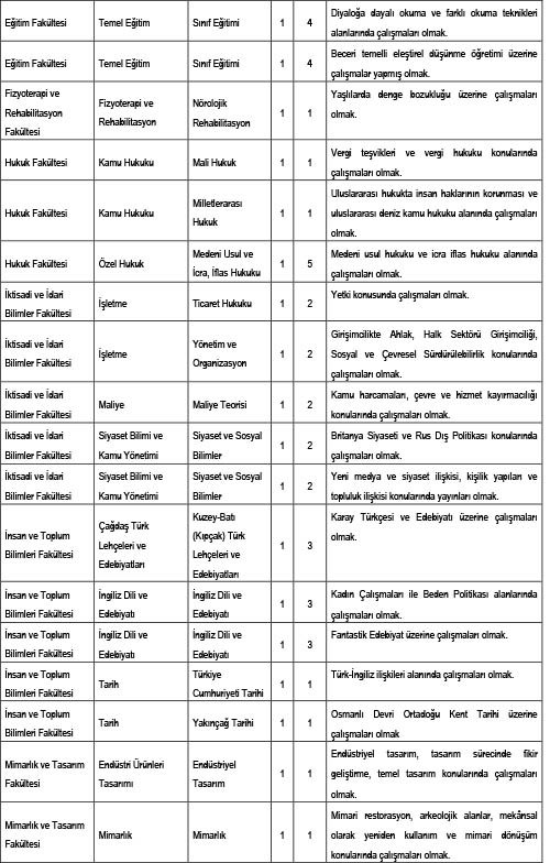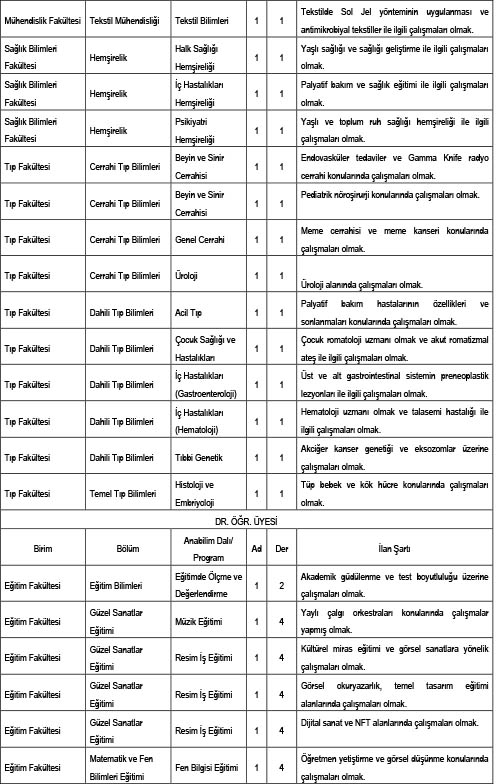 - İdare uygun gördüğü takdirde ilanın her aşamasını değiştirebilir ve iptal edebilir. Öğretim Üyesi kadrolarına başvuracak adayların: