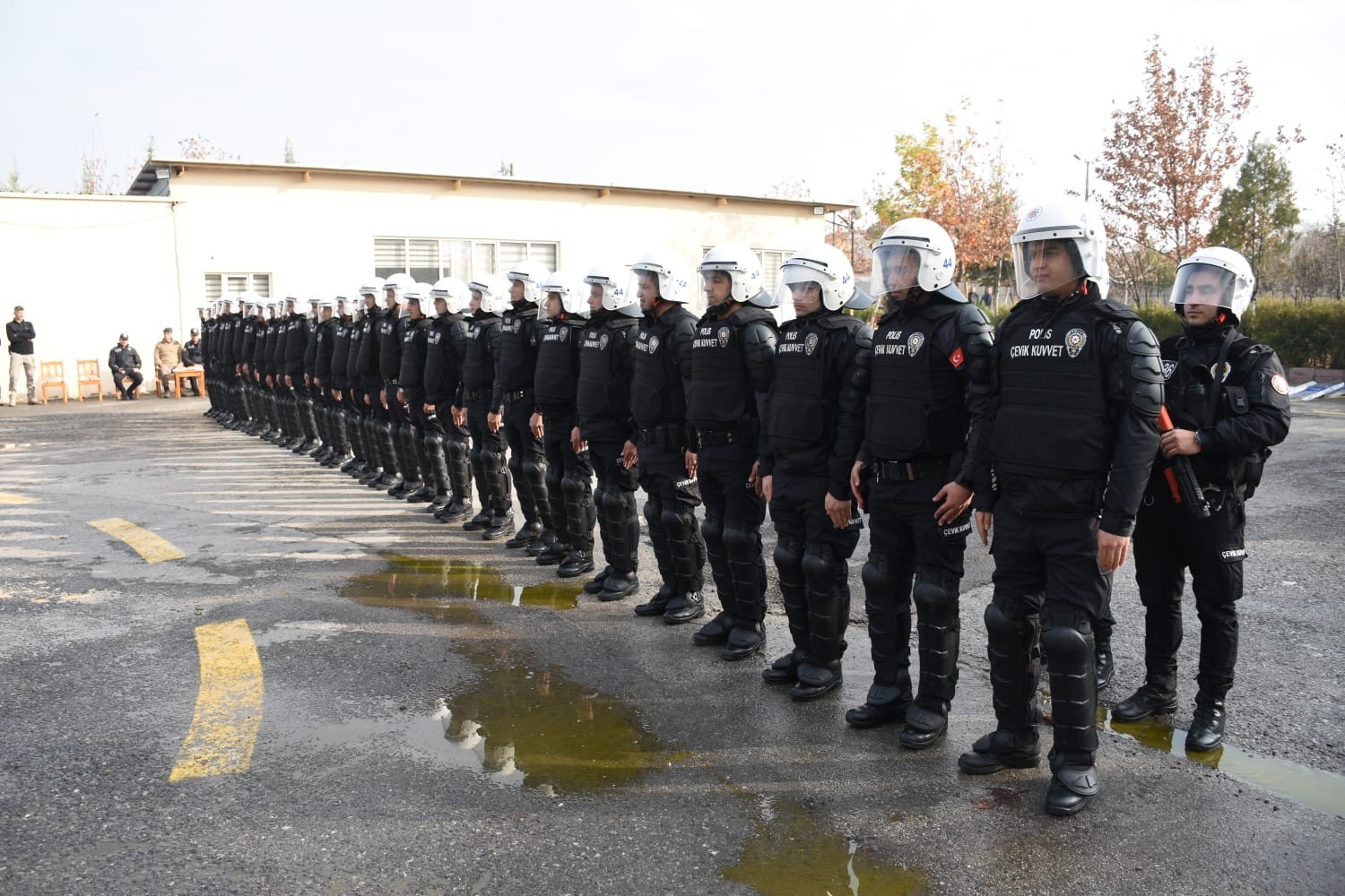 Eğitim çerçevesinde, toplumsal olaylara müdahale ederken kullanılan taktik ve düzenler akabinde gerçeği aratmayan tatbikat gerçekleştirildi. Çevik Kuvvet ekipleri, izinsiz gösteri gerçekleştiren gruba yasal sınırlar içerisinde toma ve göz yaşartıcı gaz kullanımı ile gözaltına alma işlemi uygulamalı olarak icra etti.