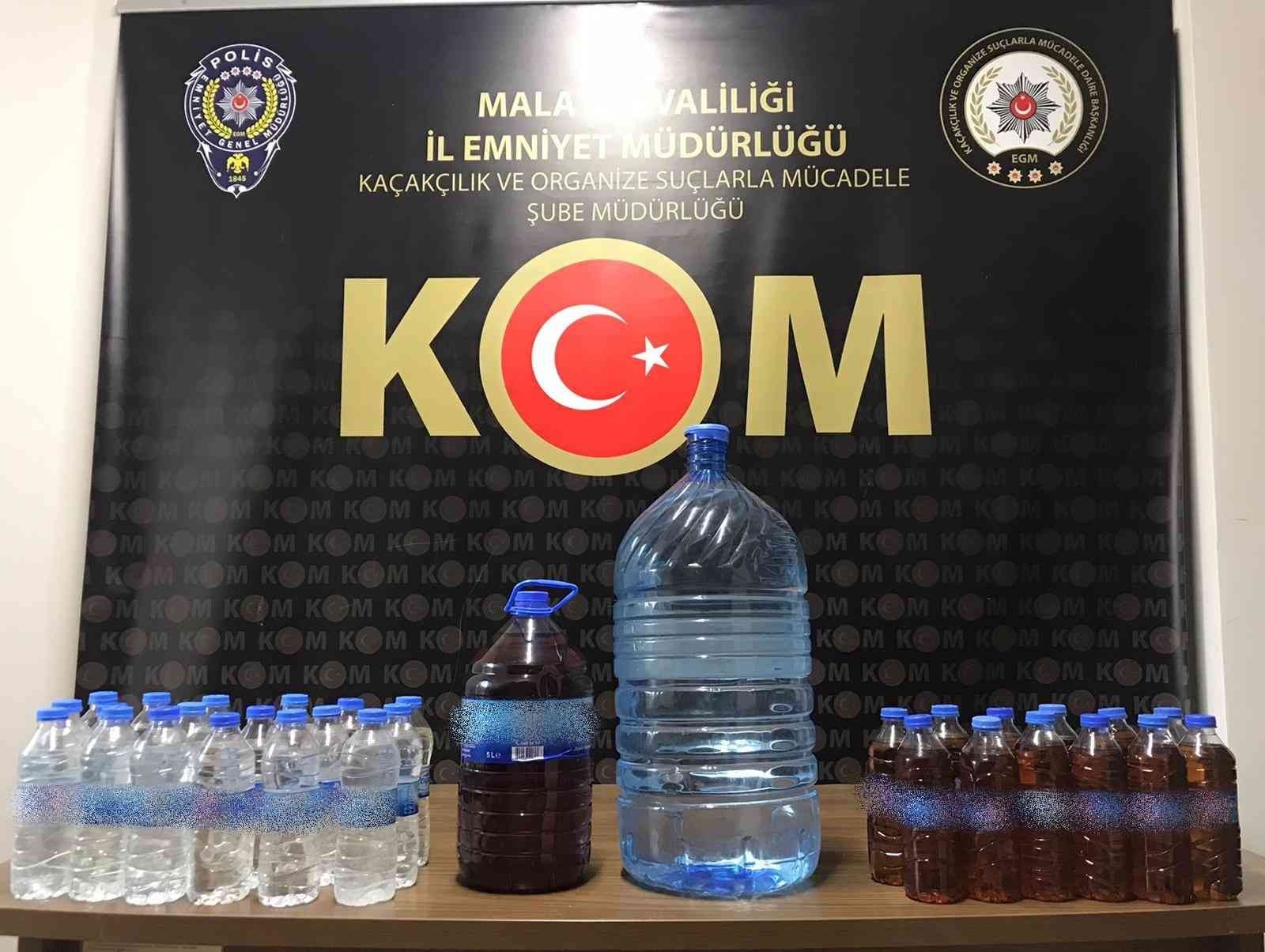 Malatya'da polis tarafından düzenlenen kaçakçılık operasyonlarından 39 litre sahte alkol ile çok sayıda bandrolsüz makaron ele geçirildi.