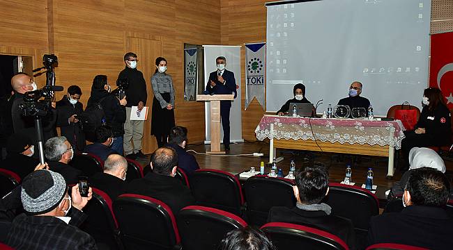 Muhtarlar Toplantısı nedeniyle Pütürge’de bulunan Vali Aydın Baruş, teslimi yapılacak olan 104 adet konutun kura çekimi törenine katıldı.