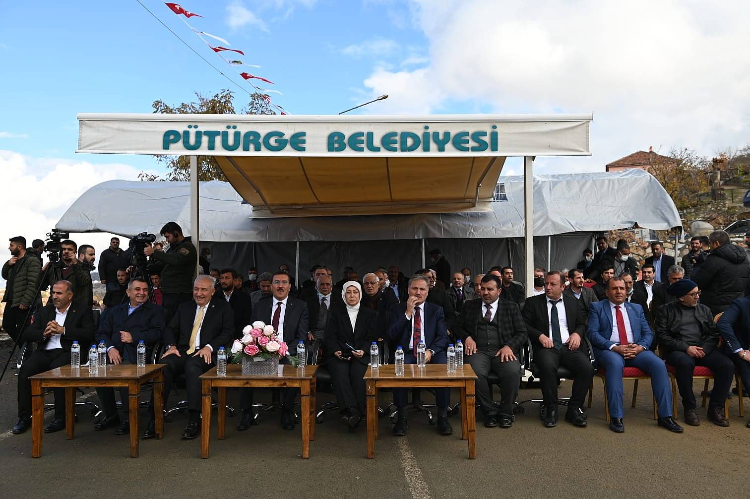 İlçemize çok özel bir Öğretmen Evi ve Halk Eğitim Merkezi kazandırıyoruz ve az önce bunun temel atma törenini gerçekleştirdik. Belediye Binamızın da temelini attık. Pütürge burada yapılan yeni konutlarla beraber 67 mahallesi ile birlikte inşallah buradan hizmet alacak. Ben Pütürgeli hemşerilerime bugüne kadar verdikleri desteklerden dolayı ve bundan sonra da destek olacakları için teşekkür ediyorum" şeklinde konuştu.