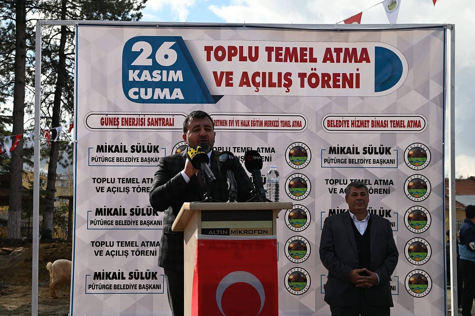 Açılış töreninde konuşan Pütürge Belediye Başkanı Mikail Sülük, "İlçemize kazandırmış olduğumuz 1 Megawattlık Güneş Enerji santralinin açılışını yaptık. Hemen akabinde Öğretmen Evi ve Halk eğitim Merkezi'mizin temel atma törenini gerçekleştirdik. Yine Pütürge Belediyesi'ne 35 bin nüfusa kadar hizmet verebilecek yeni hizmet binasının temelini inşallah hep beraber atacağız" ifadelerini kullandı.