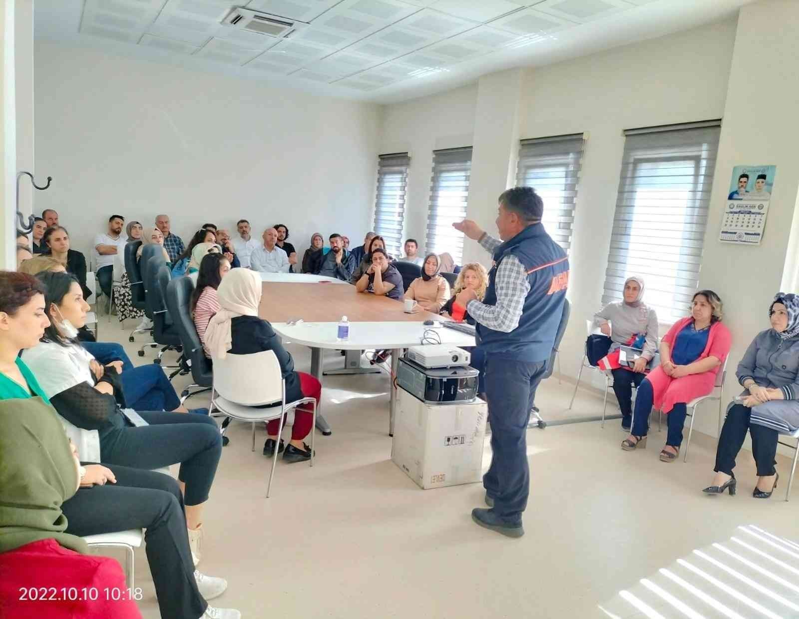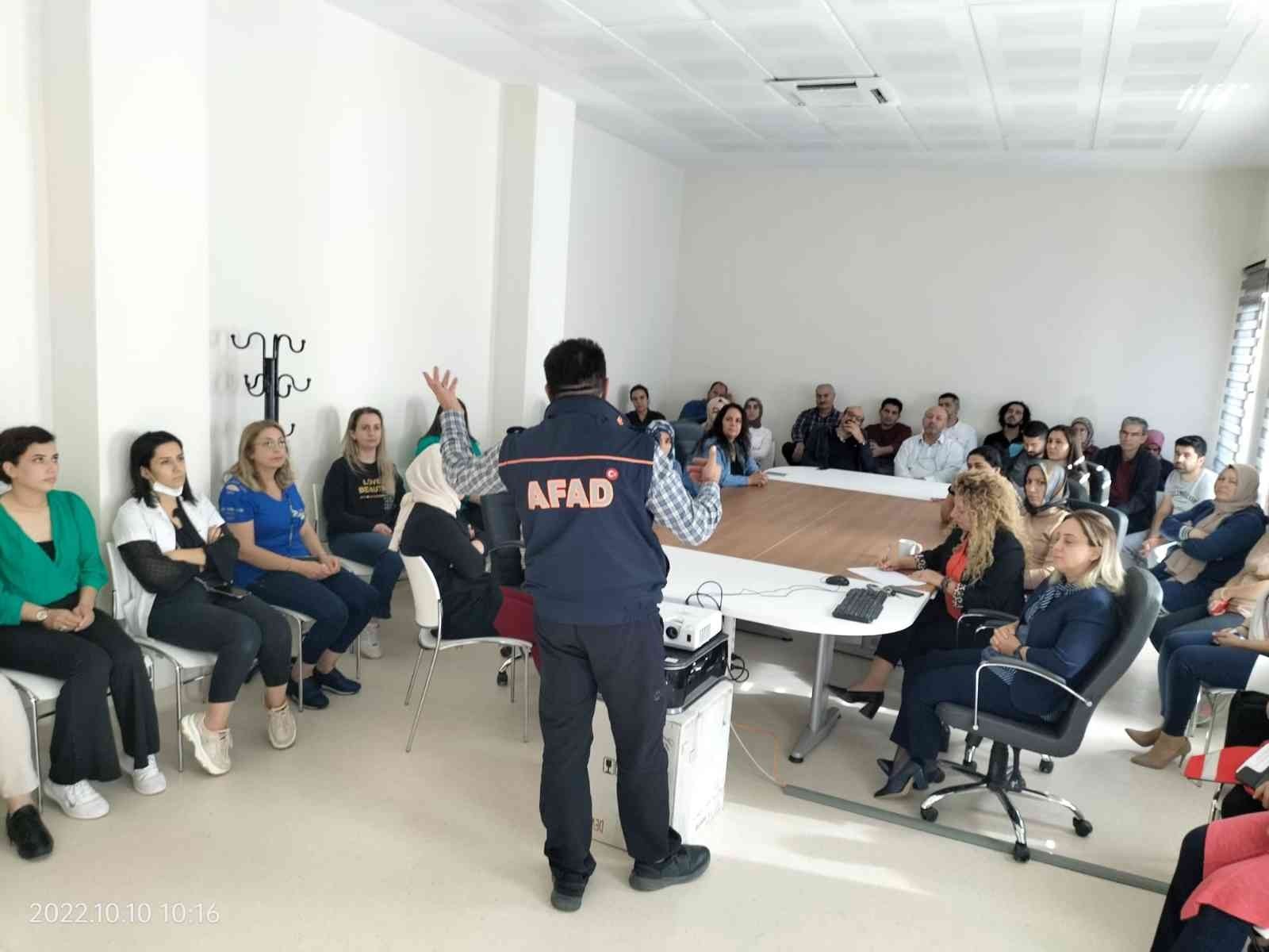 Sağlık İl Müdürlüğü Sivil Savunma ve Seferberlik Hizmetleri Birimi Koordinasyonunda Afet ve Acil Durum Müdürlüğü (AFAD), Büyükşehir Belediyesi İtfaiye Hizmetleri Daire Başkanlığı ve Ulusal Medikal Kurtarma ve Arama (UMKE) ekiplerinin katılımlarıyla sağlık çalışanlarına yönelik, deprem ve yangın tatbikat eğitimleri sürüyor.
