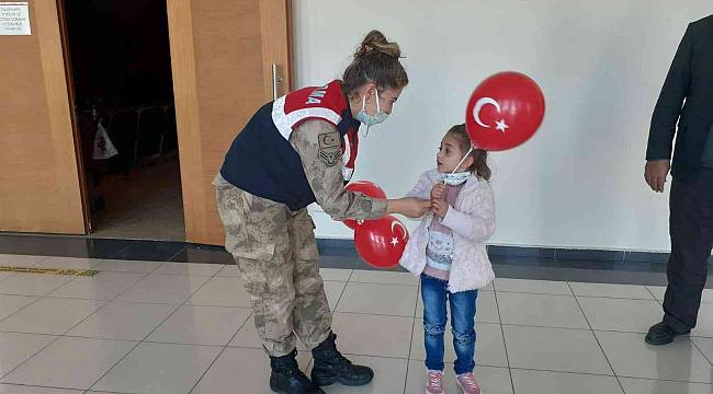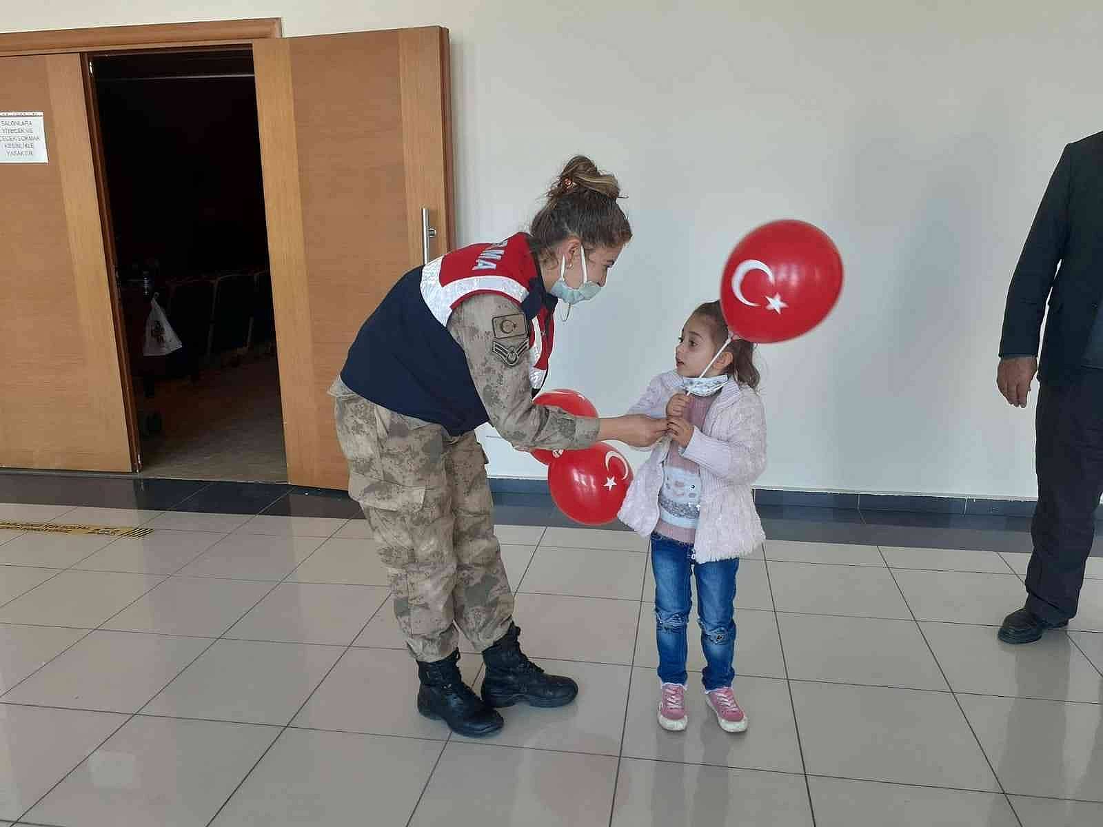 Çocuklara ayrıca balon, boyama kitabı ve Jandarma çocuk dergisi dağıtıldı.