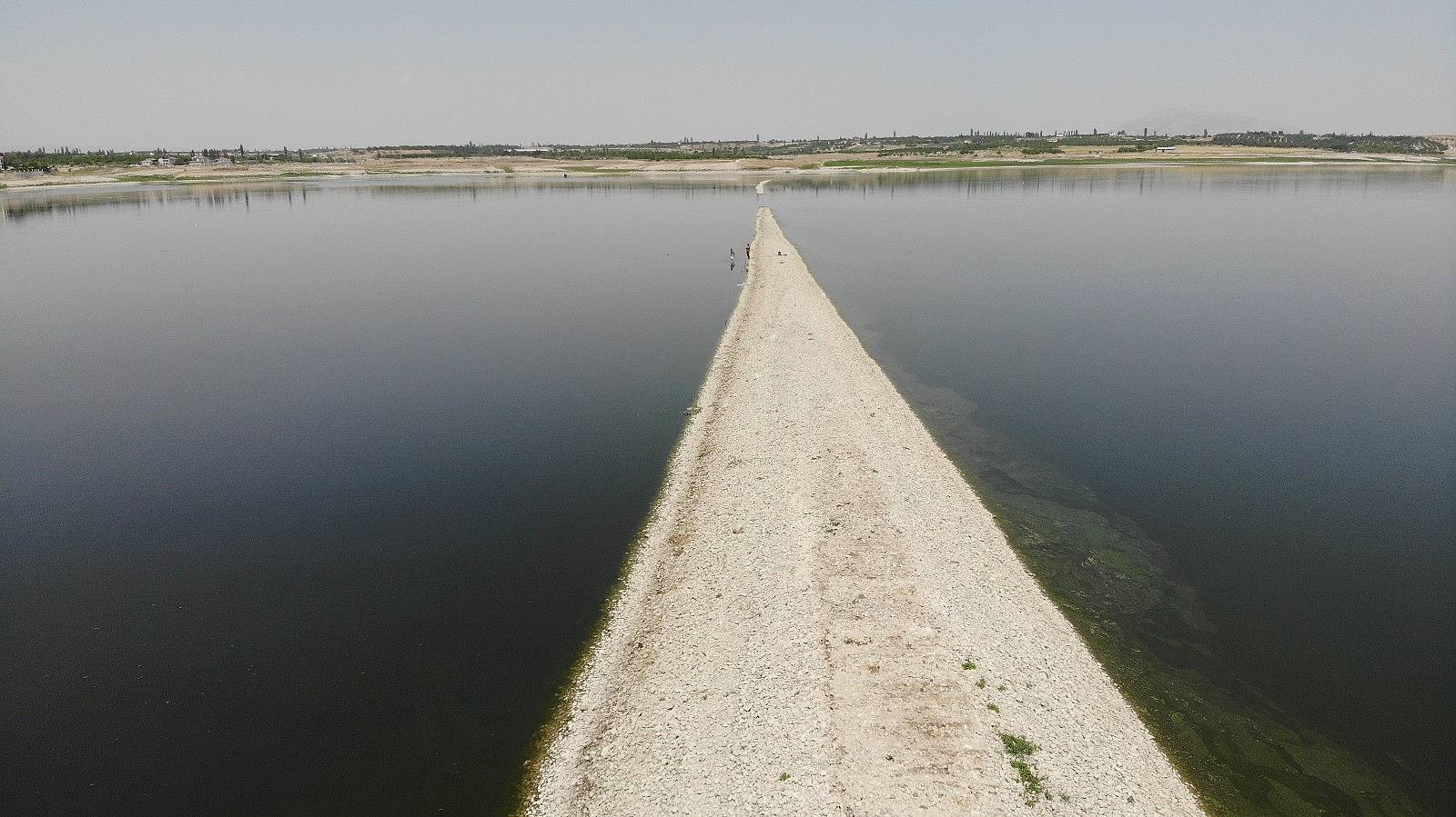 Malatya'da Karakaya Baraj Gölü'nde suların çekilmesiyle ortaya çıkan demir yolu köprüsü, barajı adeta ikiye ayırdı.