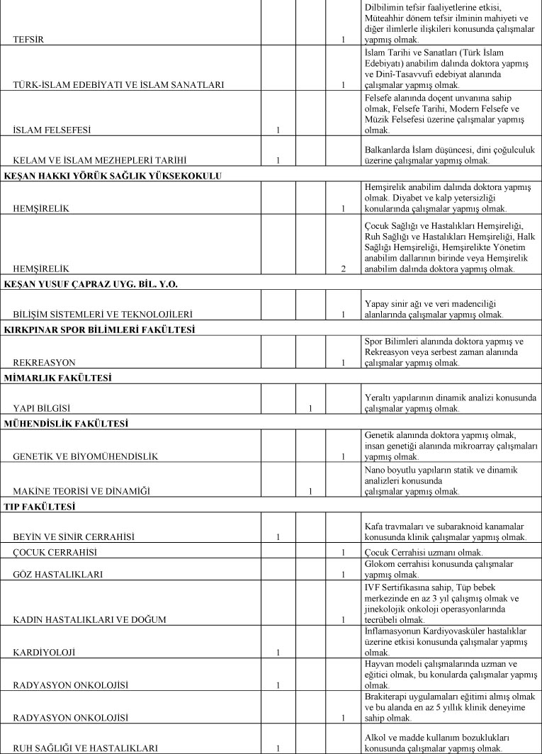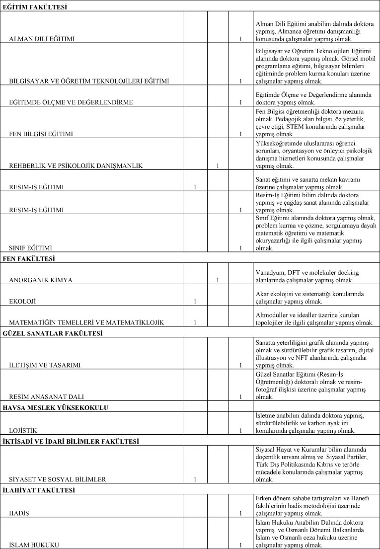 2547 Sayılı Kanun’un ilgili maddeleri ile Öğretim Üyeliğine Yükseltilme ve Atanma Yönetmeliği uyarınca Üniversitemizin aşağıda belirtilen birimleri için öğretim üyesi alınacaktır.