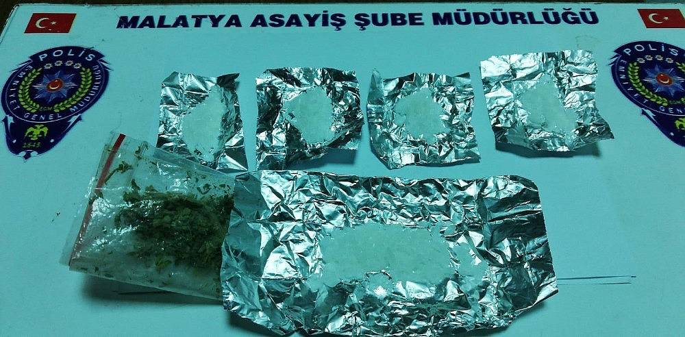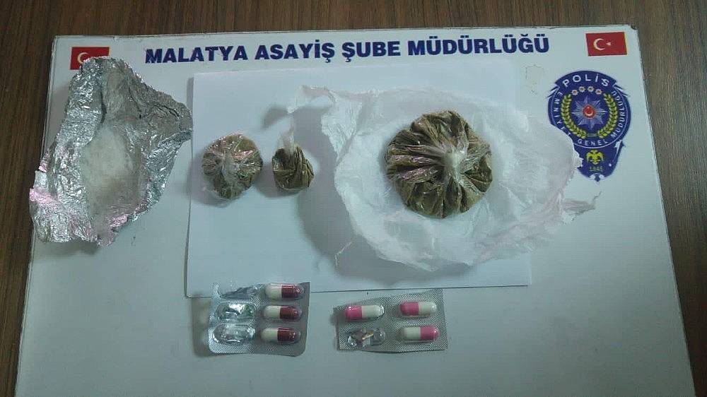 Malatya İl Emniyet Müdürlüğü'ne bağlı Asayiş Şube Müdürlüğü ekiplerince, Zafer, Taştepe, Başharık, Kiltepe, Yeşilkaynak Mahallleri ile Kuyu Önü mezarlık mevkiinde yapılan çalışmalarda yaklaşık 70 gram çeşitli maddelerden oluşan uyuşturucu ele geçirilirken, şüpheliler hakkında yasal işlem yapıldı.