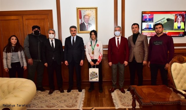 Vali Aydın Baruş, Avrupa Muay Thai Şampiyonası'nda altın madalya kazanan Malatyalı sporcu Eylül Aslan'ı makamında kabul etti.