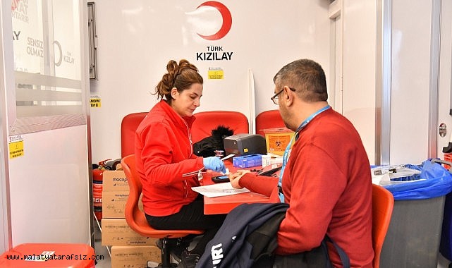 Belediye binası önünde konuşlanan Türk Kızılayı mobil kan bağış aracı, gün boyunca belediye çalışanlarını ağırlarken, kampanya sayesinde kan bağışı noktasında toplumsal bir farkındalık oluşturuldu.