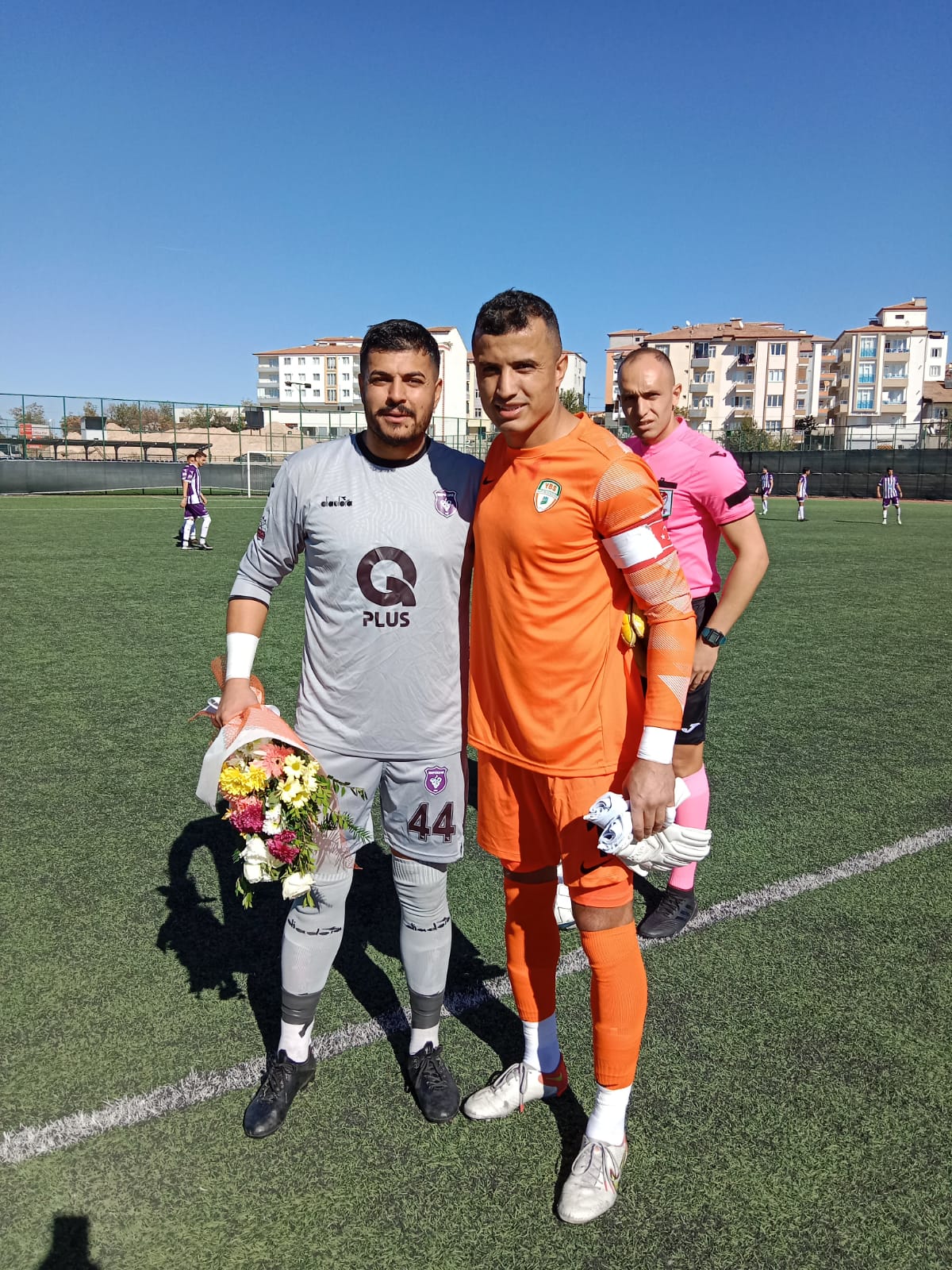 Maç öncesinde Yeşilyurt Belediyespor'un kaptanı Emrah Tuncel ve Arapgirispor'un Kaptanı Volkan Tuncel Kardeşler maç öncesinde Güzel görüntü oluşturdu.