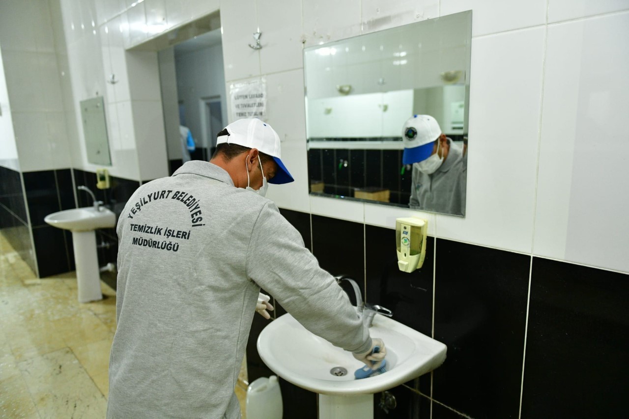 .Yeşilyurt Belediye Başkanı Mehmet Çınar ise Yeşilyurt'un 81 mahallesinde başarıyla yürüttükleri temizlik hizmetlerini 'Cami Temizlik Ekibi' ile daha geniş bir alana yaydıklarını söyledi.Yeşilyurt'un 81 mahallesinde faaliyette olan 170 caminin belirli bir periyot halinde temizlendiğine dikkat çeken Çınar, " 'Cami Temizlik Ekibi' kurarak temizlik hizmetlerimizi daha geniş bir alana yaymış oluyoruz. Yeşilyurt'un 81 mahallesinde bulunan 170 camimizin iç ve dış mekanları başta olmak üzere abdesthaneleri, lavabo ve tuvaletleri ile tüm alanlarının daha temiz, daha nezih ve daha hijyenik olması için temizlik hizmetlerimize hız verdik. Cami temizlik ekiplerimiz merkezdeki camilerimizi haftada bir, kırsal bölgelerdeki camilerimizi ise ayda bir olmak üzere baştan aşağıya temizliyorlar. Camilerimiz kutsal mekanlarımız ve ortak kalbimizdir. Belediye olarak camilerimizin restore edilmesinin yanı sıra vatandaşlarımızın huşu içerisinde ibadet edebilmesi için camilerimizin daha temiz olmasına özen gösteriyoruz. Camilerimizde mis gibi gül kokan ortamda cemaatin ibadetlerini yapma imkanı sunuyoruz" diye konuştu.