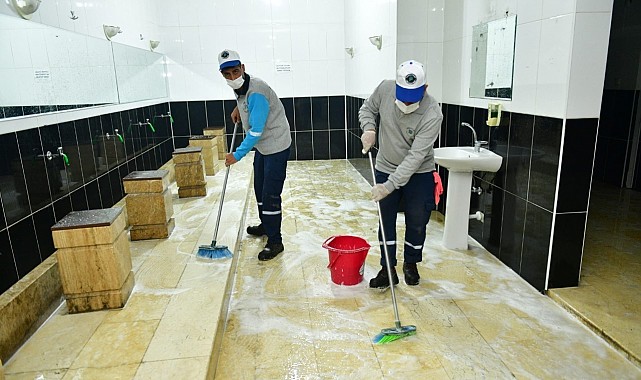 Malatya Yeşilyurt Belediyesi Temizlik İşleri Müdürlüğü bünyesinde kurulan 'Cami Temizleme Ekipleri', vatandaşların sağlıklı ve huzurlu bir şekilde ibadet edebilmeleri için düzenli olarak camilerin iç ve dış mekanlarının yanı sıra abdesthane, tuvalet ve lavaboları hijyenik olarak temizliyor.