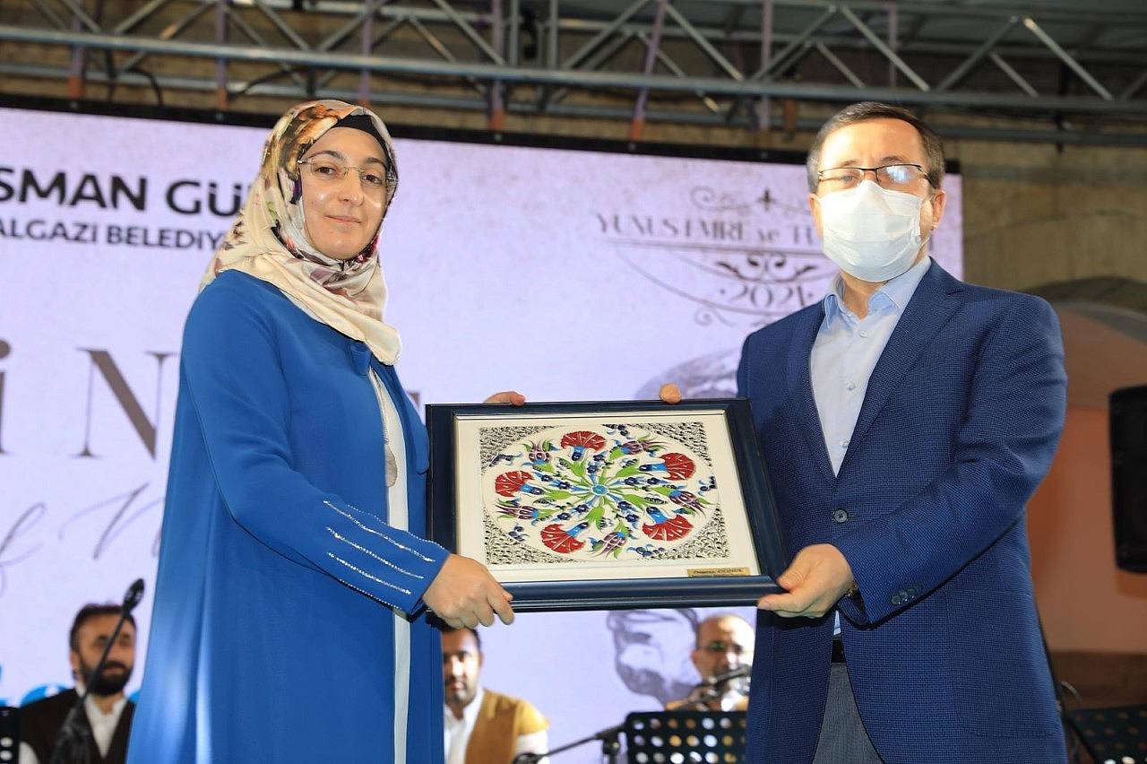Programın açılış konuşmasını gerçekleştiren Battalgazi Belediyesi Başkan Vekili Eyüp Sağlam, "Vefatının 700'üncü seneyi devriyesinde gönül sultanımız Yunus Emre'yi rahmetle ve minnetle yad ediyoruz. Yunus'u, Hacı Bektaş'ı ve Pir Sultanı velhasıl 780 bin kilometre kare vatan toprağını sevgiyle, aşkla, kardeşlikle yoğuran her bir gönül sultanımızı inşallah yüreklere nakşedeceğiz. 2021 yılı Türk Dili ve Kültürünün en önemli şahsiyetlerinden Yunus Emre'nin vefatının 700'üncü yıl dönümü münasebeti olması münasebetiyle UNESCO tarafından anma ve kutlama yıl dönümleri arasına alındı. Resmi Gazetede yayımlanan genelge ile de 2021 yılı Cumhurbaşkanımız Recep Tayyip Erdoğan tarafından "Yunus Emre ve Türkçe Yılı" olarak ilan edildi. 2021 yılının "Yunus Emre ve Türkçe Yılı" olarak ilan edilmesi çok anlamlı bir sentez oluşturuyor. Dolayısıyla hem dünyaya hem kendimize verdiği bir mesaj var. Bu mesajı da Yunus Emre'nin diliyle özetlemek istiyorum. 'Söz ola kese savaşı, söz ola kestire başı, Söz ola ağulu aşı, bal ile yağ ede bir söz. Gelin tanış olalım, işi kolay kılalım. Sevelim, sevilelim, bu dünya kimseye kalmaz diyor' Yunus Emre. Battalgazi Belediyemiz tarafından düzenlenen programımıza hepiniz hoş geldiniz ve sizleri saygıyla selamlıyorum" ifadelerini kullandı.